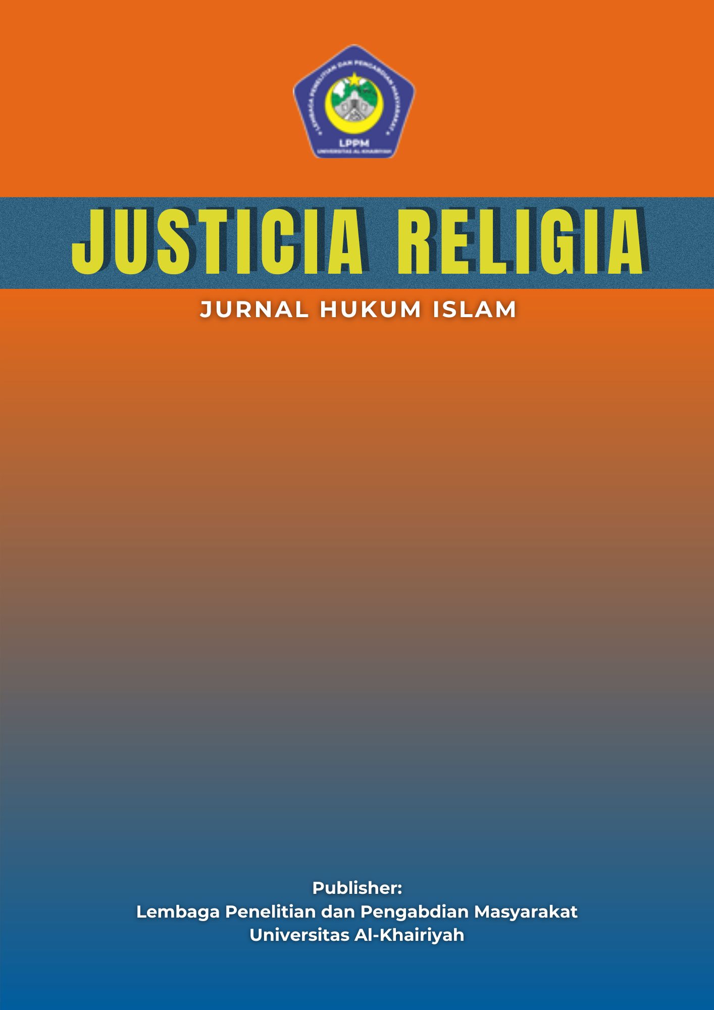Justicia Religia is an Islamic Law Journal published by Lembaga Penelitian dan Pengabdian Masyarakat (LPPM) Universitas Al-Khairiyah. The journal features scholarly publications in the field of Islamic Law, encompassing classical and contemporary Islamic legal studies; comparative studies between Islamic Law and other legal systems; Islamic Family Law (Ahwal al-Syakhsiyyah); Islamic Criminal Law (Jinayah); Islamic Economic Law; Islamic Constitutional Law (Siyasah Syar‘iyyah); Human Rights in the Perspective of Islamic Law; methodologies of Islamic legal research; the implementation of Islamic Law in the modern world; Minority Fiqh (Fiqh al-Aqalliyyat); and other areas related to Islamic Law.